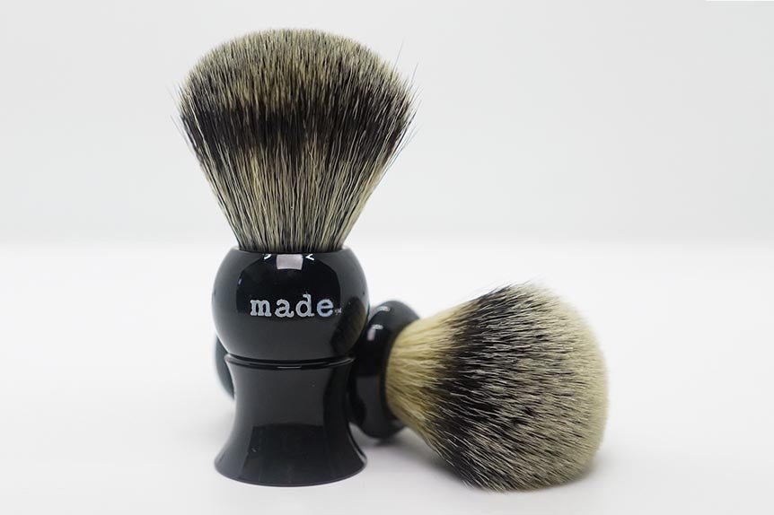 Shave in luxury with the finest, synthetic silvertip badger. No badgers harmed. This is the latest in bio-synthetic silvertip bucky badger reproduction. Soft, durable, and doesn’t harbor any bacteria.